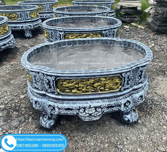 - Tính thẩm mỹ cao: Chậu được đúc khuôn nét, các họa tiết phong thủy mang lại may mắn đến gia chủ.